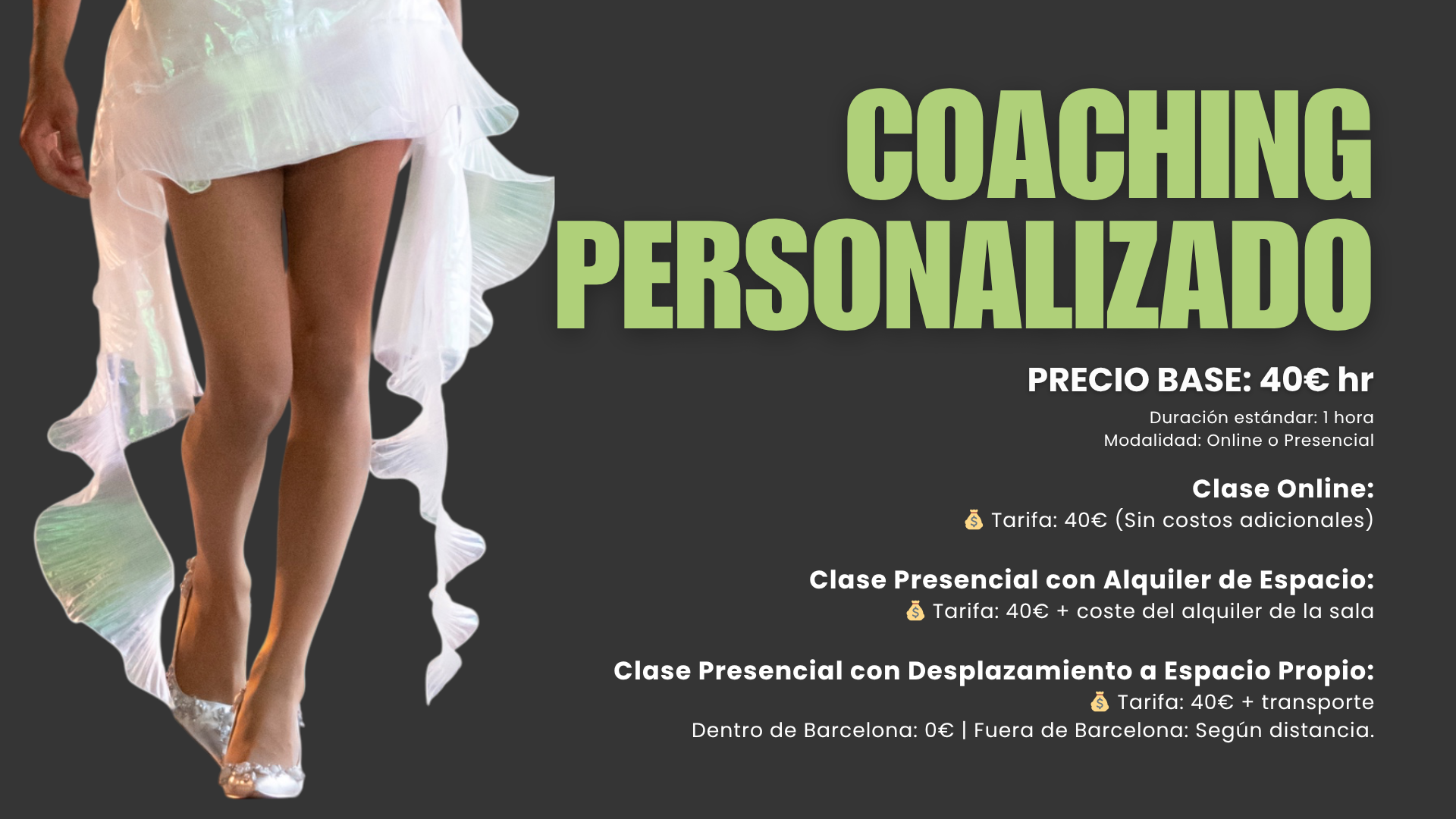 Cada sesión se centra en trabajar aspectos específicos como pasarela, posado, comunicación o preparación para castings, ajustando el contenido al nivel, ritmo y necesidades de cada persona.